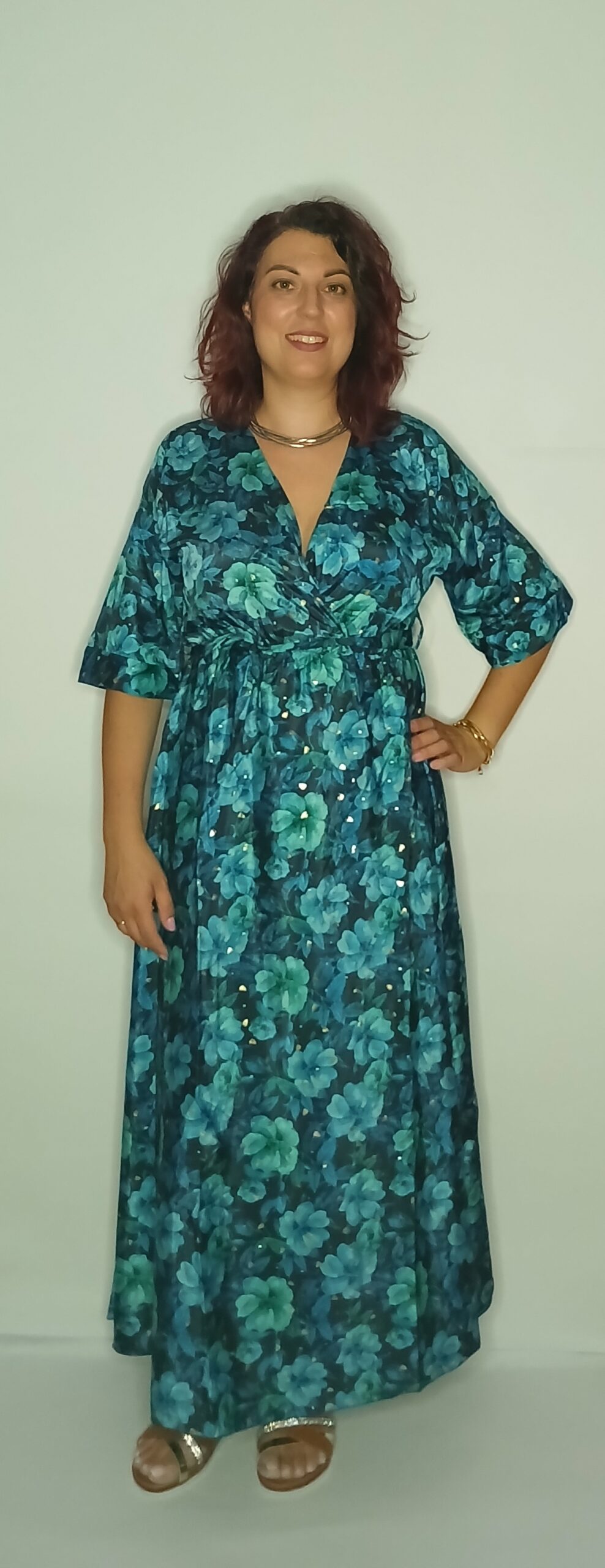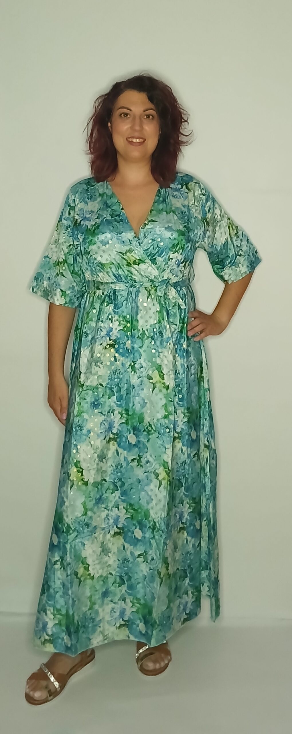 ΦΟΡΕΜΑ ΜΑΚΡΥ ΚΡΟΥΑΖΕ ΜΕ ΖΩΝΑΚΙ ΦΛΟΡΑΛ ΜΕ ΧΡΥΣΕΣ ΛΕΠΤΟΜΕΡΕΙΕΣ. ΕΙΝΑΙ ONE SIZE ΚΑΙ ΚΑΛΥΠΤΕΙ ΜΕΧΡΙ 105cm ΣΤΗΘΟΣ, 130cm ΜΕΣΗ ΚΑΙ 140cm ΠΕΡΙΦΕΡΕΙΑ.