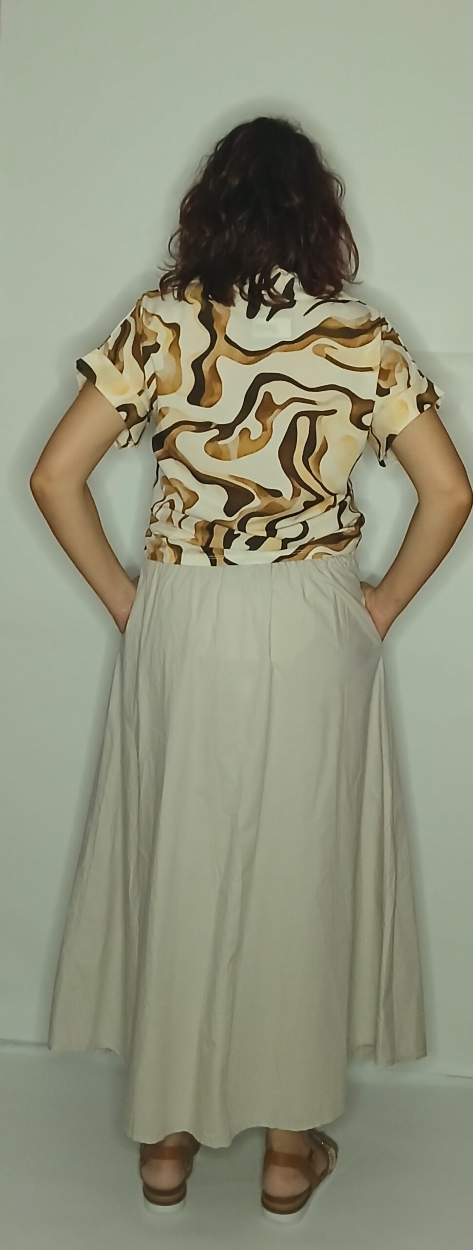 ΠΟΥΚΑΜΙΣΟ ΜΕ ΣΧΕΔΙΑ ΚΑΙ ΔΕΣΙΜΟ ΜΠΡΟΣΤΑ. ΕΙΝΑΙ 95% VISCOSE ΚΑΙ 5% ELASTAN. ΚΑΛΥΠΤΕΙ ΜΕΧΡΙ 130cm ΣΤΗΘΟΣ. 110cm ΜΕΣΗ ΚΑΙ ΠΕΡΙΦΕΡΕΙΑ.
