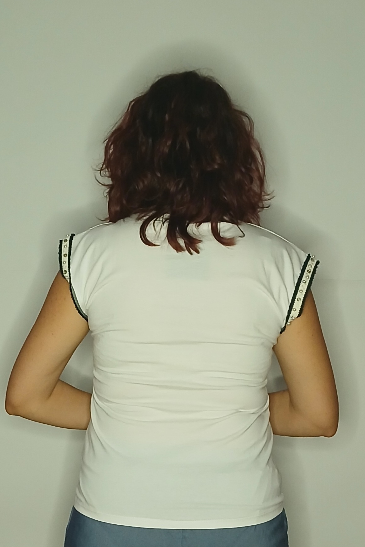 T-SHIRT ΛΕΥΚO ΜΕ ΣΤΡΑΣ ΣΤΑ ΜΑΝΙΚΙΑ